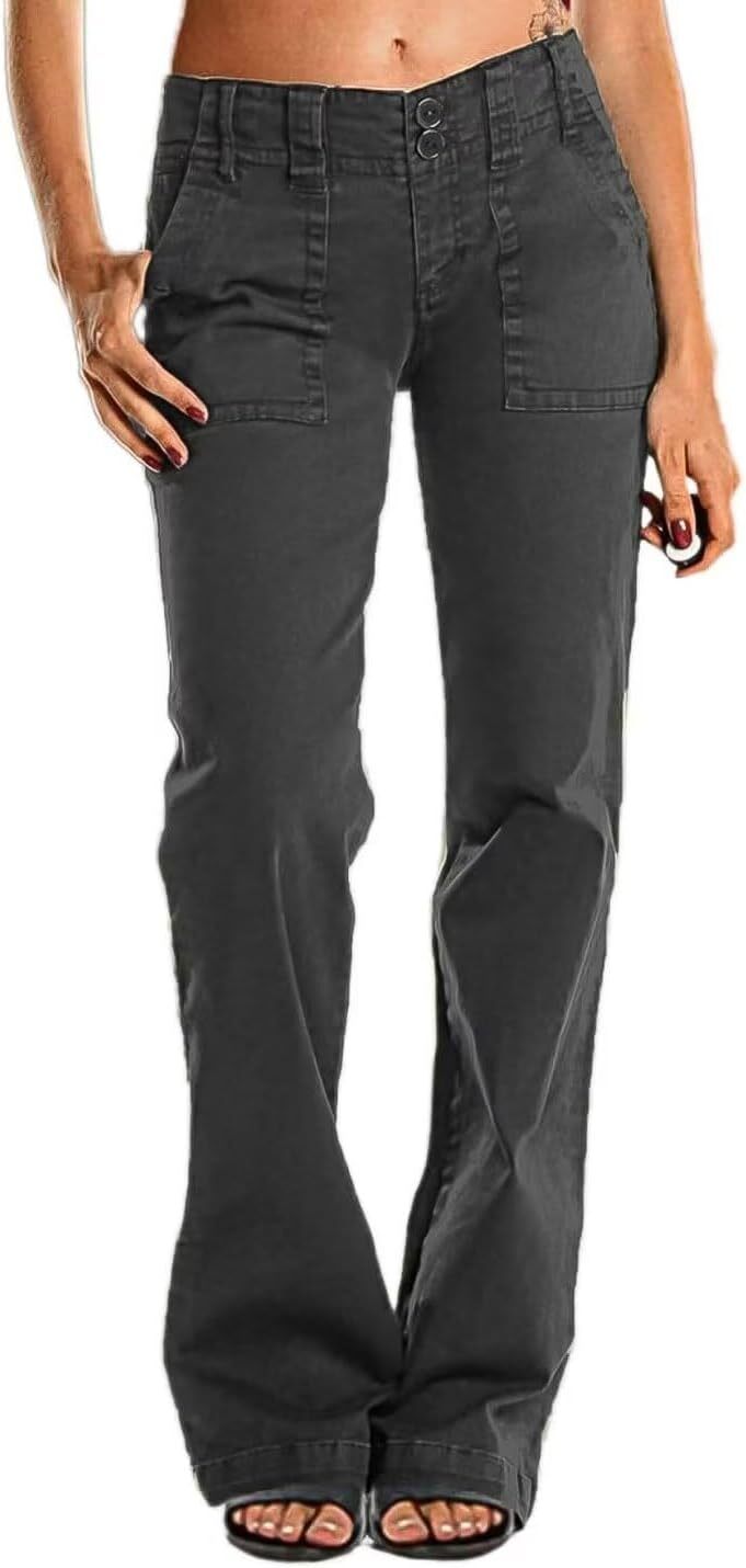 Clearance sale🔥 Double Button Mid Waist Straight Leg Pants in multiple colors—6 packs for only $24.99!