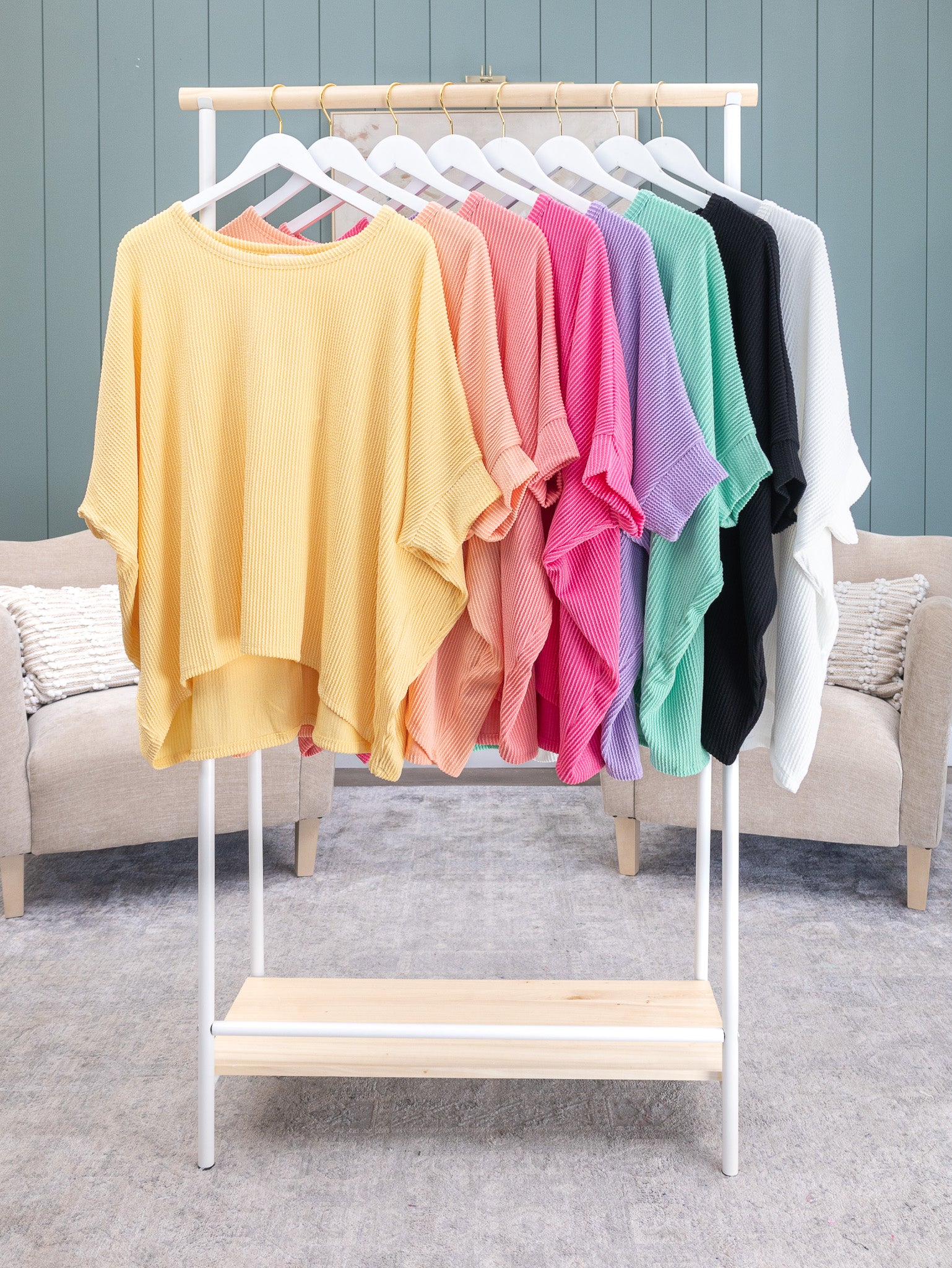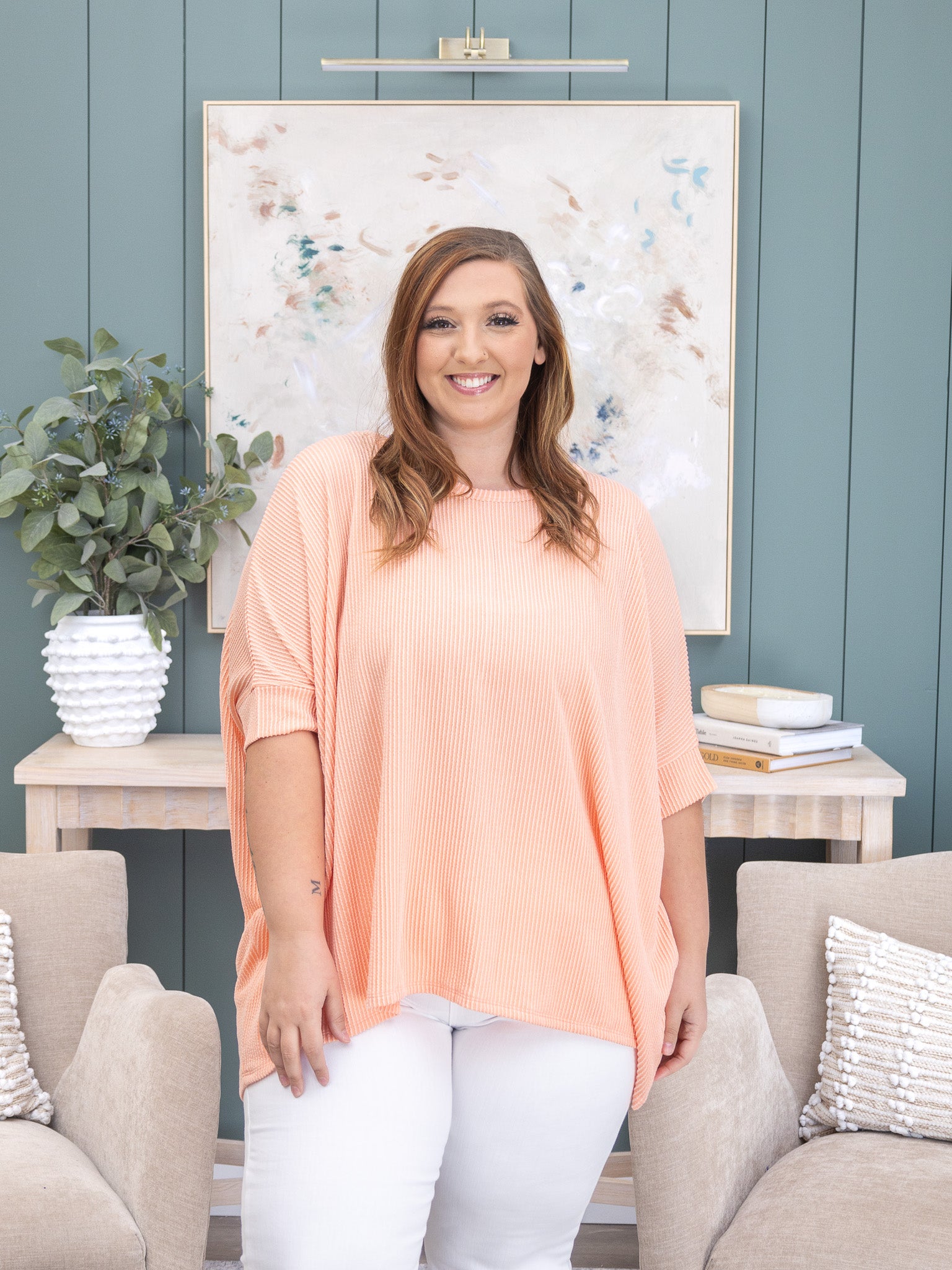 Refresh your wardrobe with this ultra-comfy, oversized ribbed top featuring a round neck and dolman short sleeves for a relaxed, flattering fit. Perfect for casual days or layering up in style!
