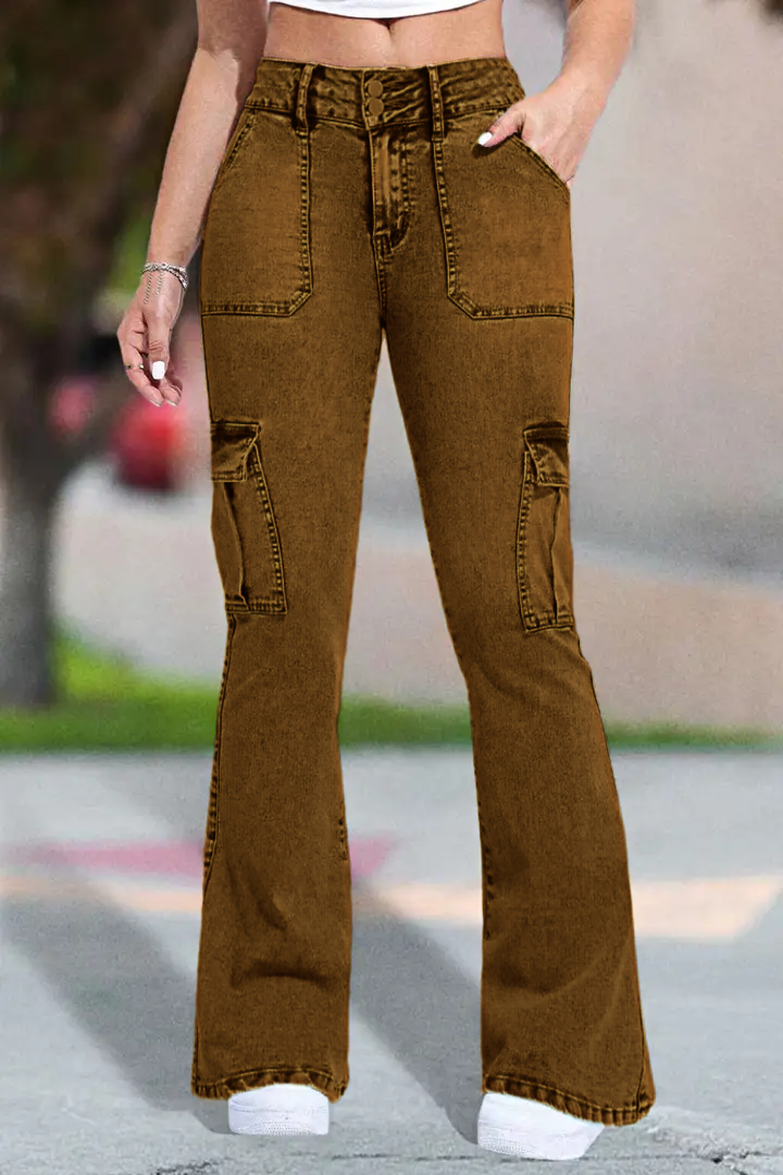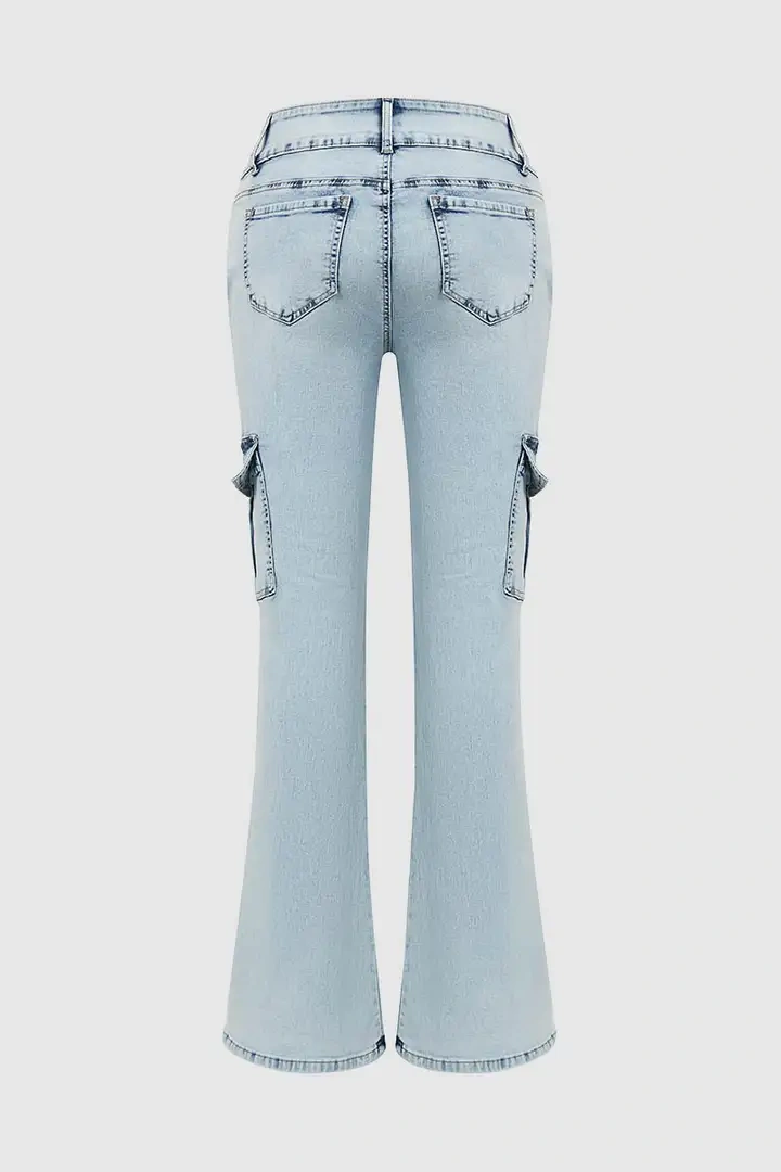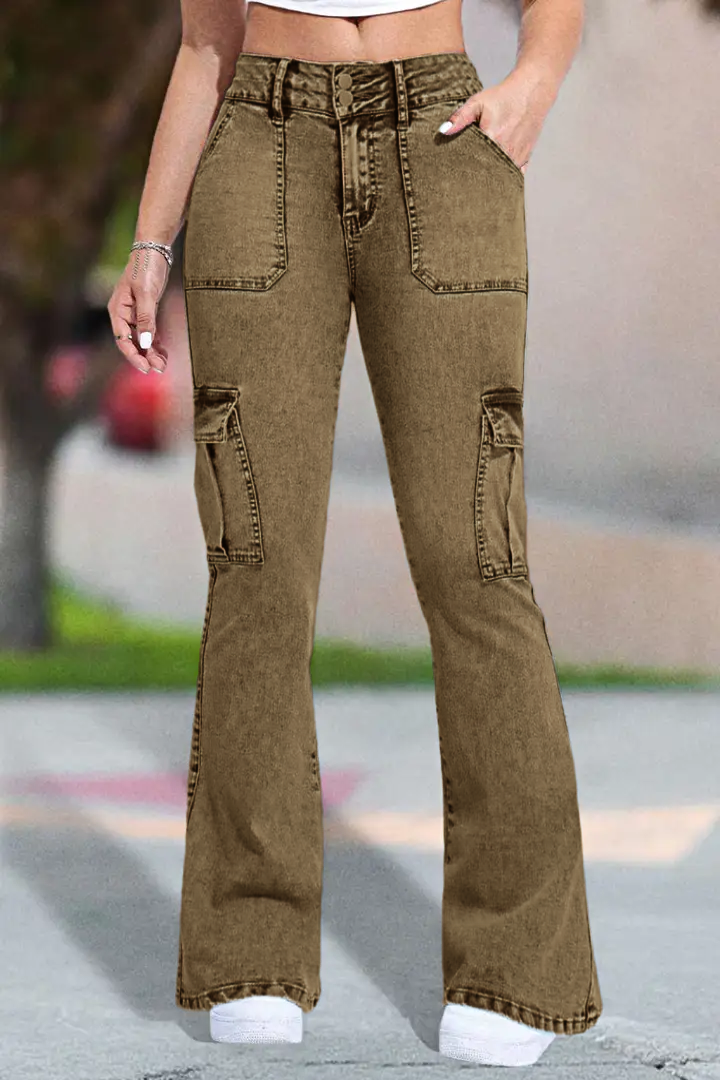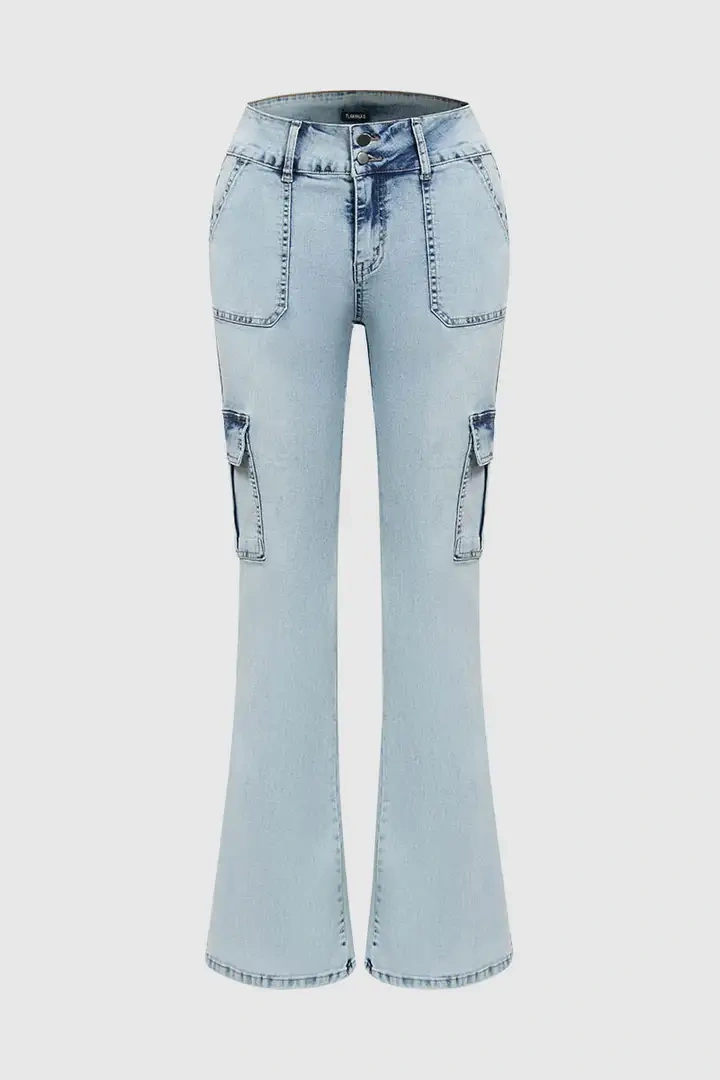 ⚡Last Chance Deal⚡- Multi Pocket Double Button Mid Rise Flare Cargo Jeans