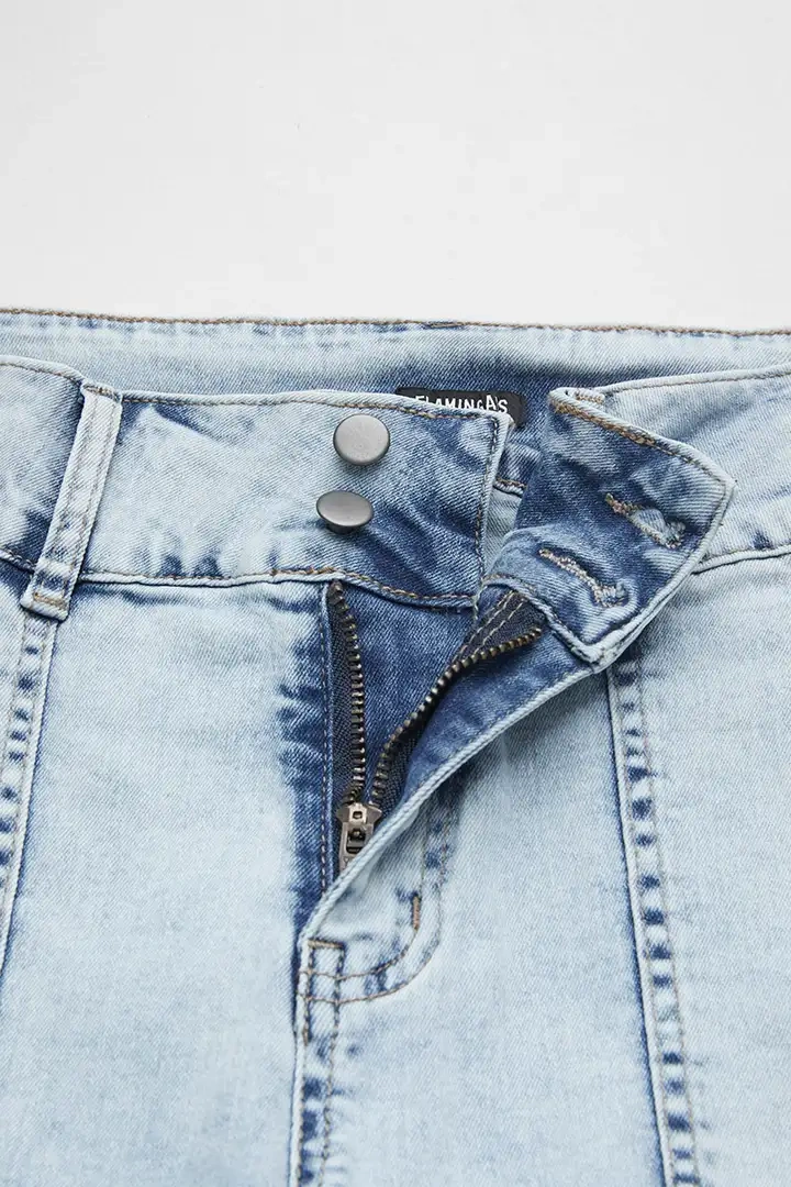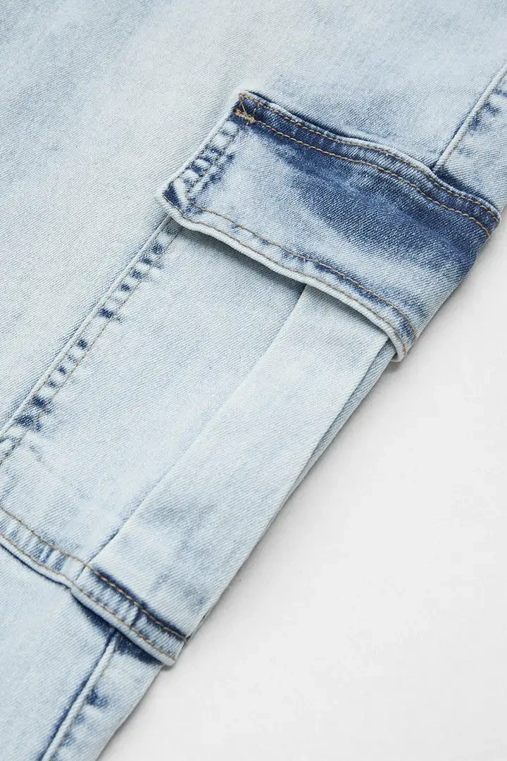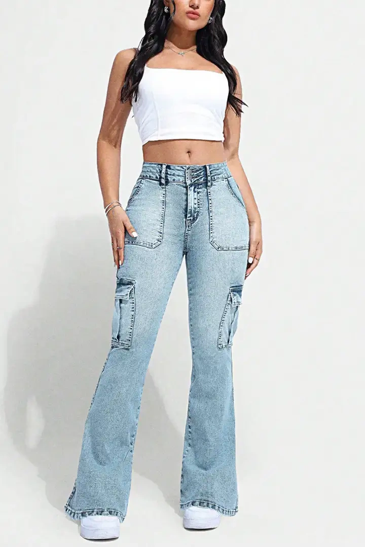 Clearance sale🔥 Multi Pocket Double Button Mid Rise Flare Cargo Jeans in multiple colors-6 packs for only $25.95(Light Blue, Grey, Peach, Navy, Blue, Black)!