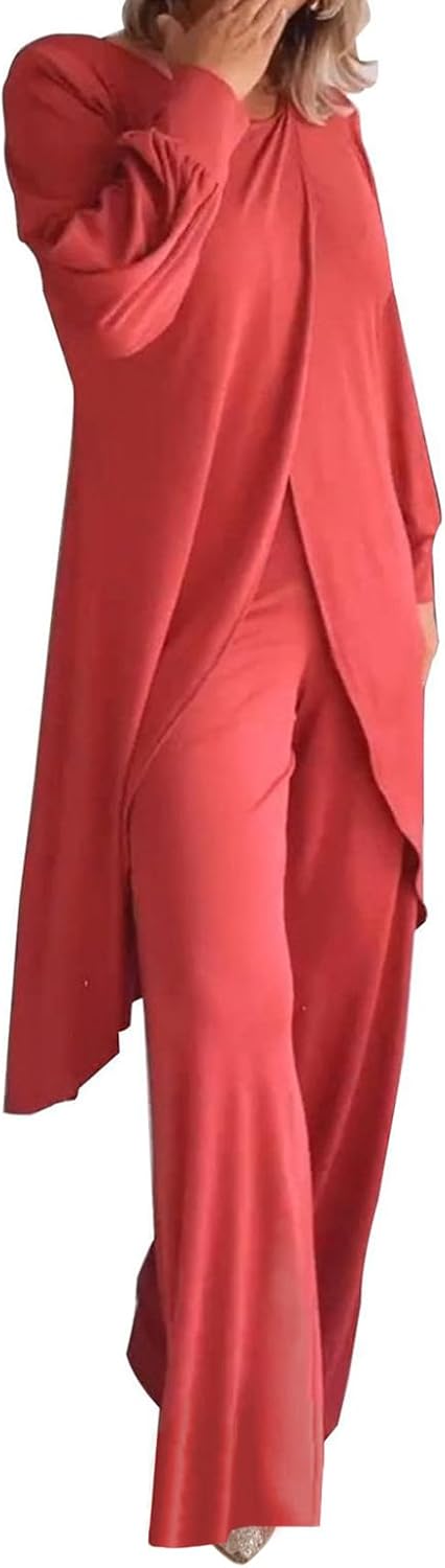 Women Summer 2 Piece Outfits 2025 Beach Crew Neck Sleeveless Cropped Top Elastic Waist Wide Leg Pants Lounge Set
