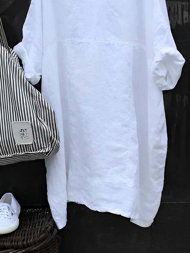 - Dropped shoulder; three- quarter length sleeves; side in-seam pockets